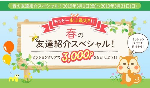 モッピー史上最大「春の友達紹介スペシャル!キャンペーン」が始まりました。