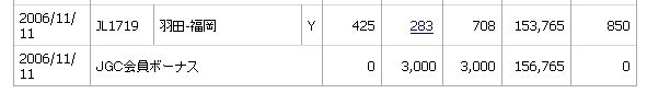 11日(土)にJAL便に搭乗しましたので、今年分のJGC初回搭乗ボーナスマイルも加算されていました(^^)