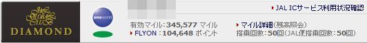 2007-09-05 JAL DIAMOND達成! JGC/SFC修行 9月からJALサイトにログオン後、ステータス表示がダイヤモンドにかわりました! メールマガジン発行中です!登録お願いします。 http://www.mag2.com/m/0000238211.html ワンクリックお願いします。 ↓↓↓ ブログランキング ブログ村