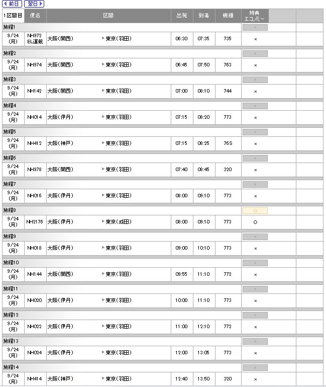 一応、昼過ぎのITM/HND便を取っていますが、下記のように