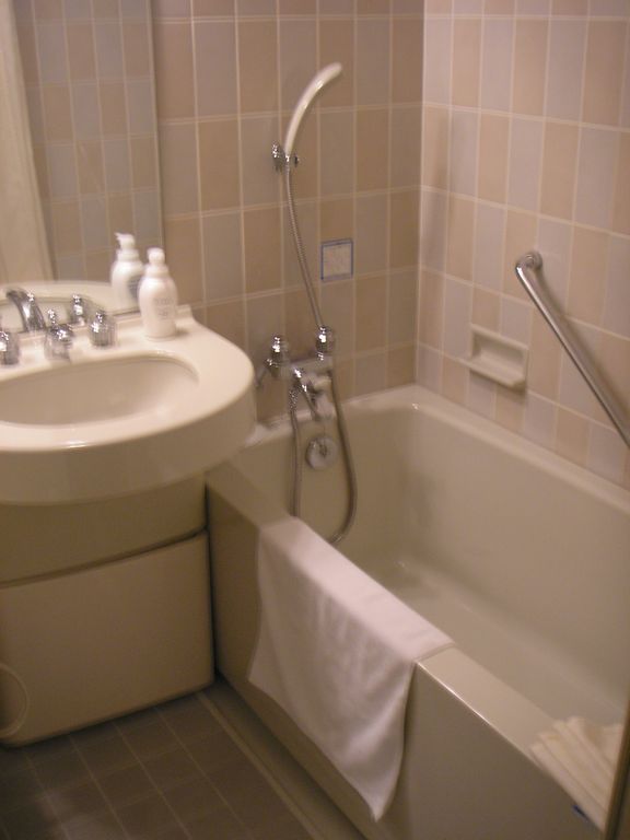 料金は11,500円。10階のダブル(セミダブル?)の部屋にアサインされました。部屋もバスも狭めで、ちょっと高級なビジネスホテルって感じです。