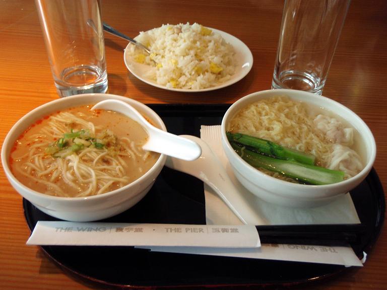 先ほどのダイニングの反対側の端っこにある、The Noodle Barへ行ってみました。メニューはワンタンメンと坦々麺。注文すると円盤みたいなのを渡されて出来上がるとそれがピカピカ光って知らせてくれます。