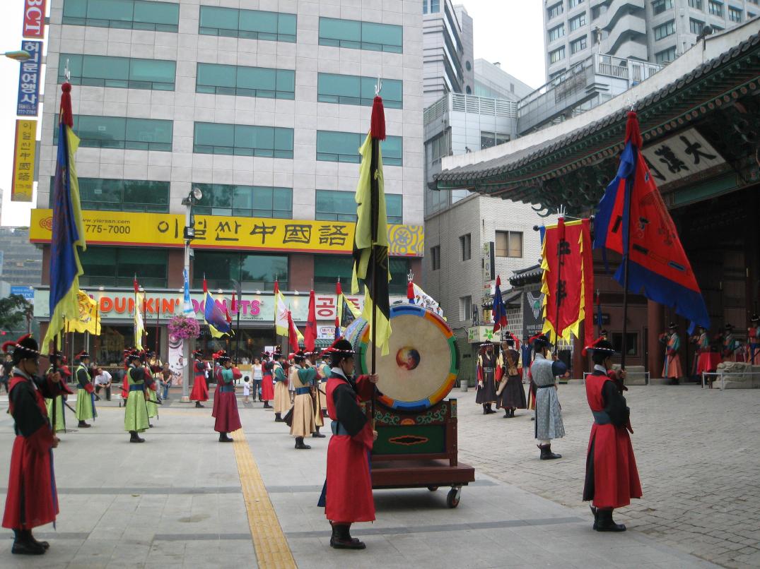 地下を通って徳寿宮前の出口から地上に上がると、、ちょうど王宮守門将交代儀式をやってました。