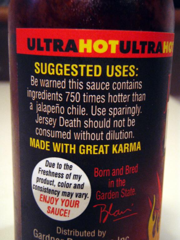 その中でも最高峰?の辛さを誇るのがこのジャージーデスソース。成分の関係上、日本へは正規輸入されていません。