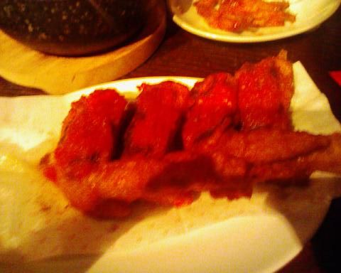 一番辛いやつで、と注文して出てきたのが写真の手羽先みたいなやつ。