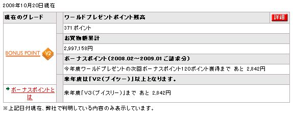 前年度(2月~翌年1月)お支払いのお買物累計金額によって「V1」「V2」「V3」の各ステージが設定され、ステージと、次の1年間にお支払いのお買物累計金額に応じてボーナスポイントをプレゼントするサービスです。