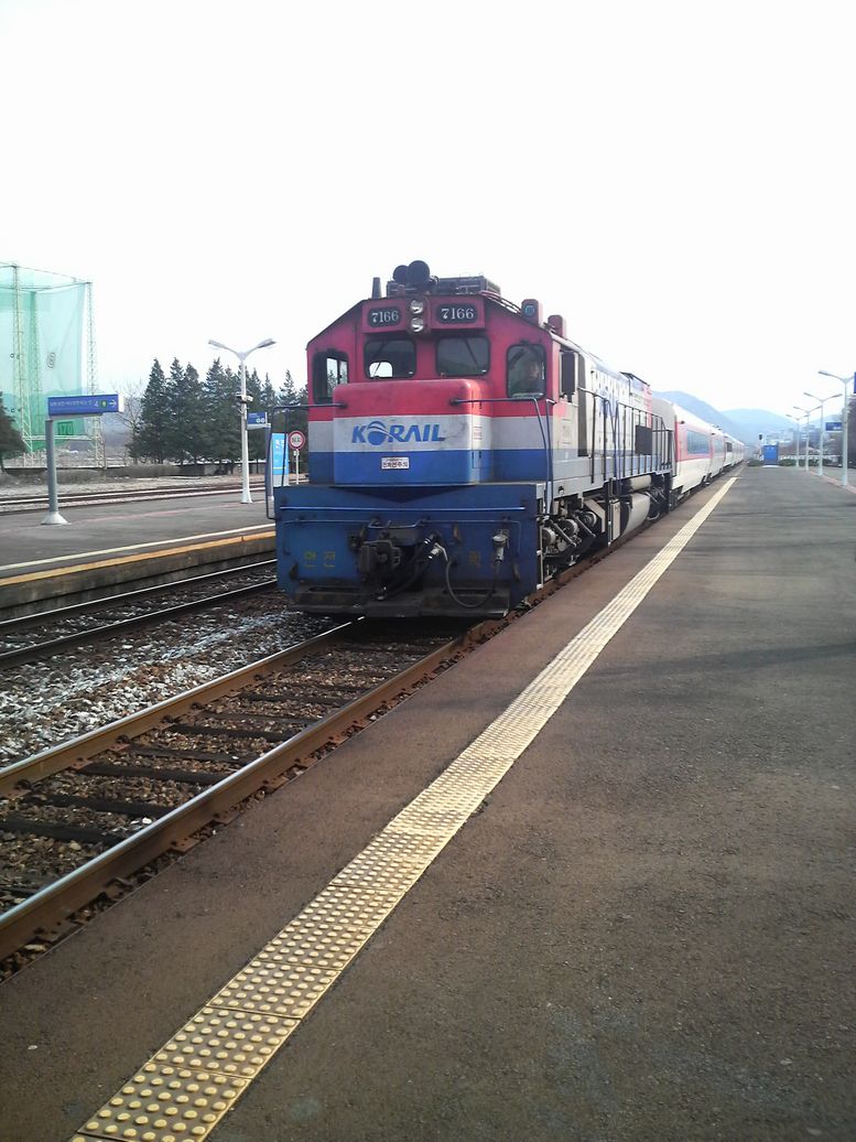 ほぼ時間通りにムグンファ号が到着。改札はありませんでした。降りるときにも改札が無いので、やろうと思えばキセルも出来ちゃいますね。。。日曜の午後の電車ですが、満席状態でした。週末に移動する場合は事前に予約しておいた方が良いかと思います。