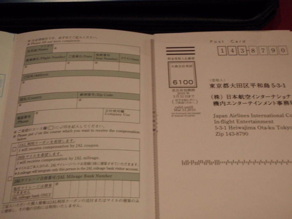 本日のJL717ですが、エンターテイメント機材の故障のため、2回ほど再起動をかけ(それぞれ30分くらいかかります)、それでもやはりうまくうごかなかったようです。(Y席のシステムがダメだったようで、F席は全く問題がなかったのですが、再起動をすると機内全部のシステムが使えなくなるので、結局影響を受けました)