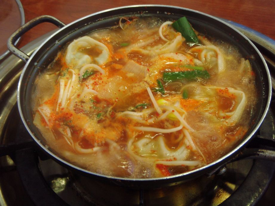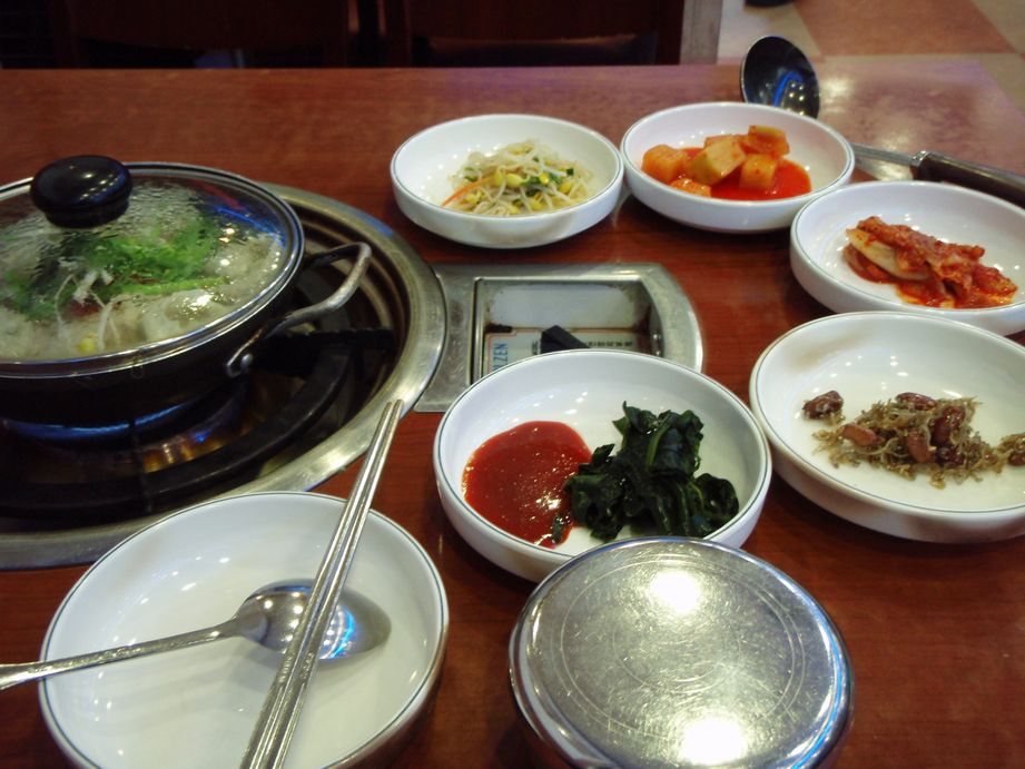 2009-01-25 今日の晩ご飯 @ソウル金浦空港 旅行(修行以外) ソウル金浦空港の国際線ターミナル3Fある韓国料理屋にて。 マンドゥジョンゴル。餃子が入った鍋ですね。 これで1人前5,000ウォン。いまだと日本円で300円ちょっとです!安! こういった鍋物は2名以上じゃないと断られたりする店もあったりしますが、ここはちゃんと一人用の鍋があります。辛さも程よくなかなかおいしいですよ。