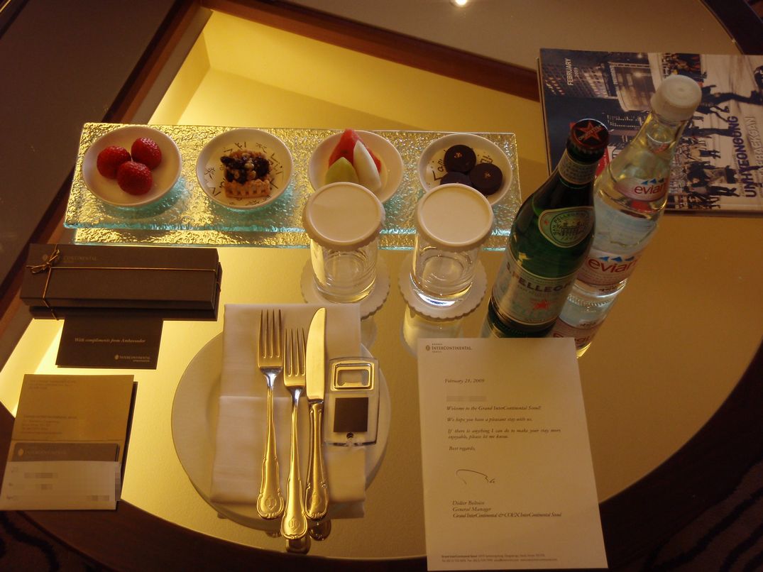 2009-02-22 @ソウルグランドIC ホテル修行 14時くらいにチェックイン。チェックインすると日本語ができる方が出てきてお部屋まで案内してくれました。 4000ポイント付きのプランで、PCRサイトから予約して総額で30万ウォンほどでした。 ネットは有料で24時間25,000KRW。 お部屋は24階のジュニアスイート(だと思う)にアサインされました。