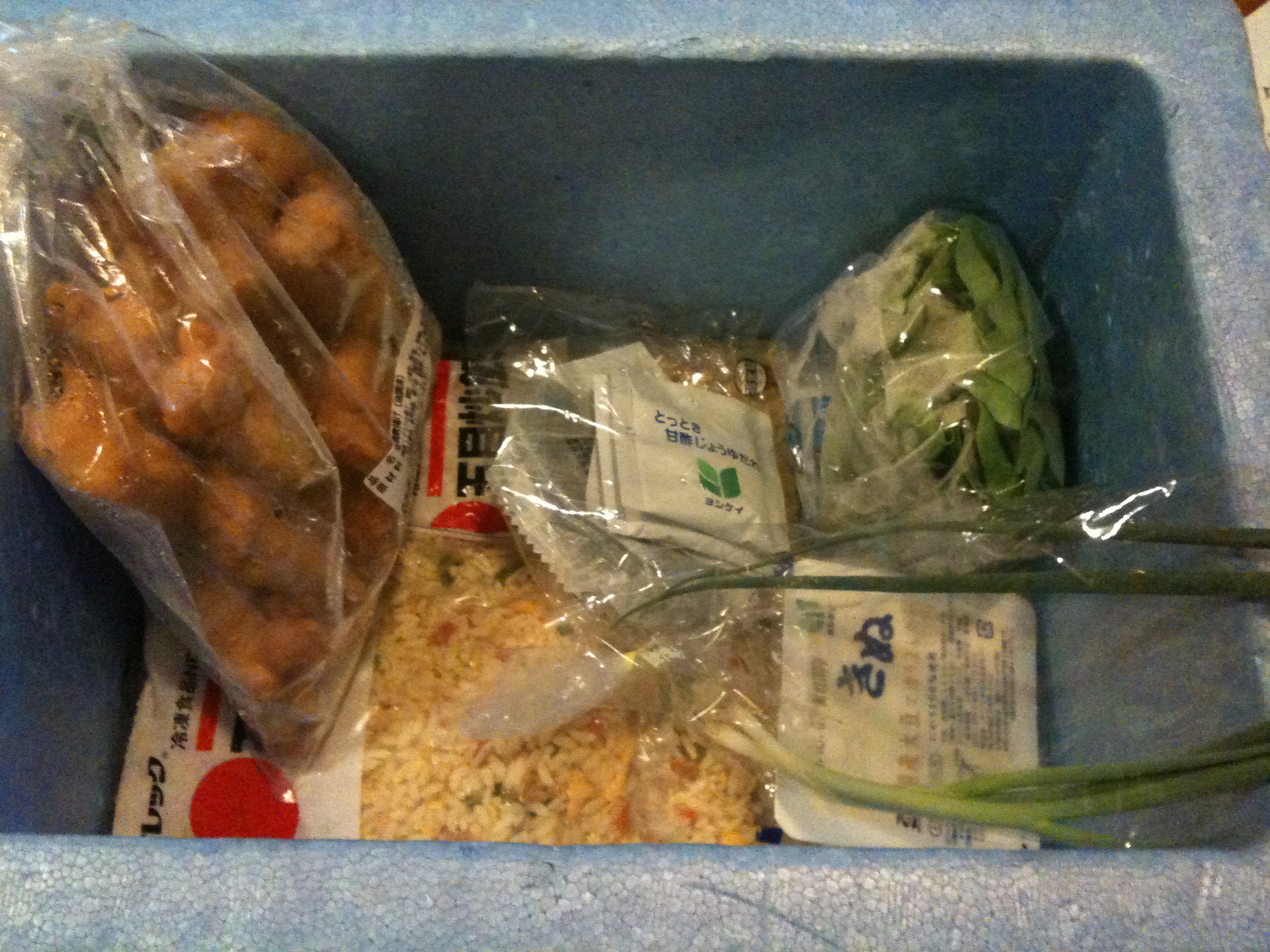 週末のメニューは「お手軽メニュー」ということで、レンジでチンできるチャーハンに唐揚げ、といった簡単なメニューでした。