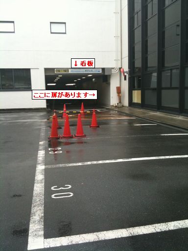 この喫煙コーナーの右側から裏へ抜けることが出来るようになっており、その裏は駐車場のようになっています。
