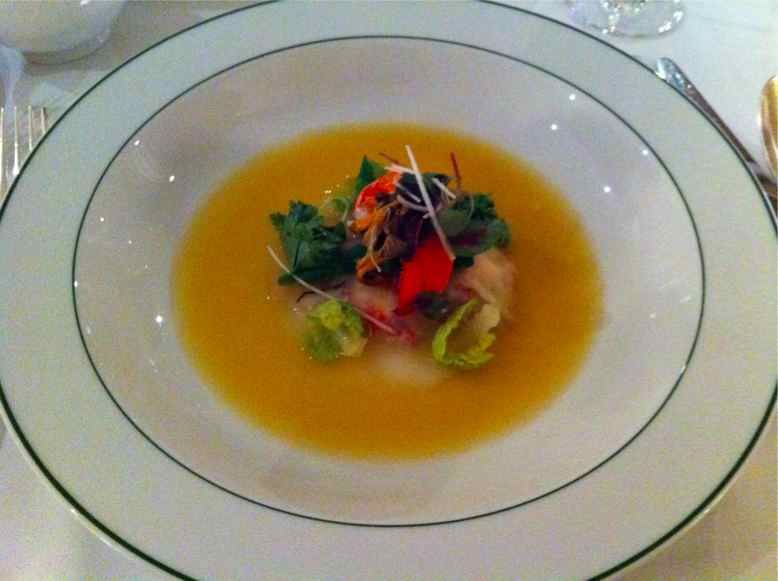 聖護院蕪で包んだオマール海老と芽キャベツ ポルチーニ茸のナージュ