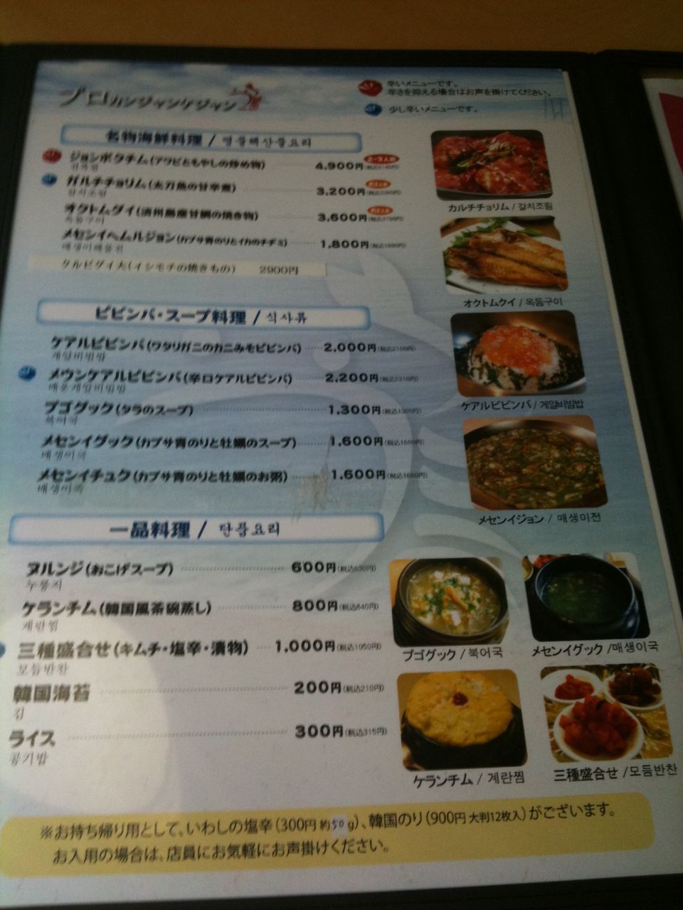 パンチャン(おかず)も出てきますが、韓国ほど多くは無い(^^;